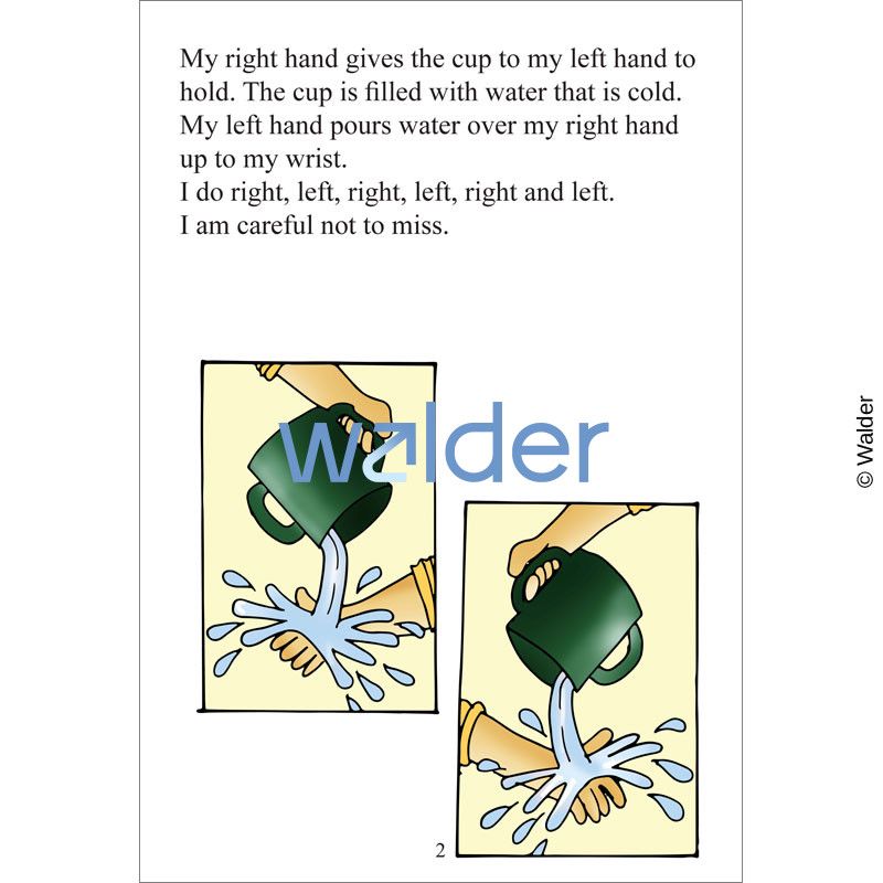This Big book is part of the Alef- Beis Middos and Mitzvos Series. It introduces and describes the mitzvah of Netilas Yadayim, washing your hands, in a sweet story. With kind, lovable characters, the students can relate to them and will want to emulate their behavior.