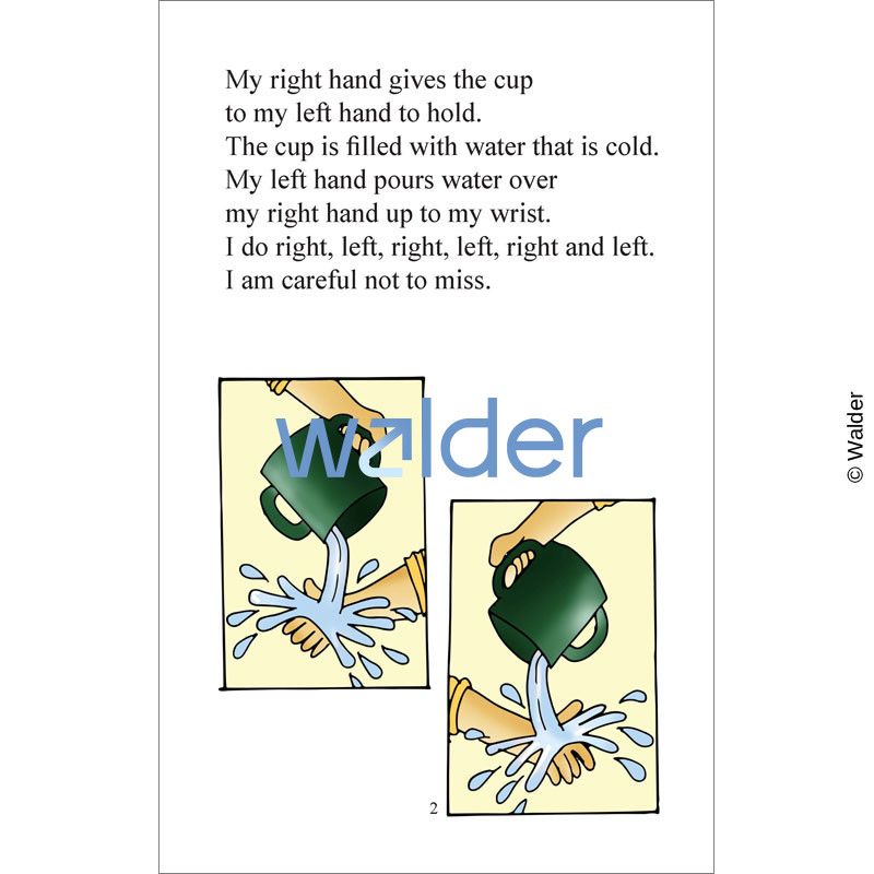 This book is part of the Alef- Beis Middos and Mitzvos Series. It introduces and describes the mitzvah of Netilas Yadayim, washing your hands, in a sweet story. With kind, lovable characters, the students can relate to them and will want to emulate their behavior.
