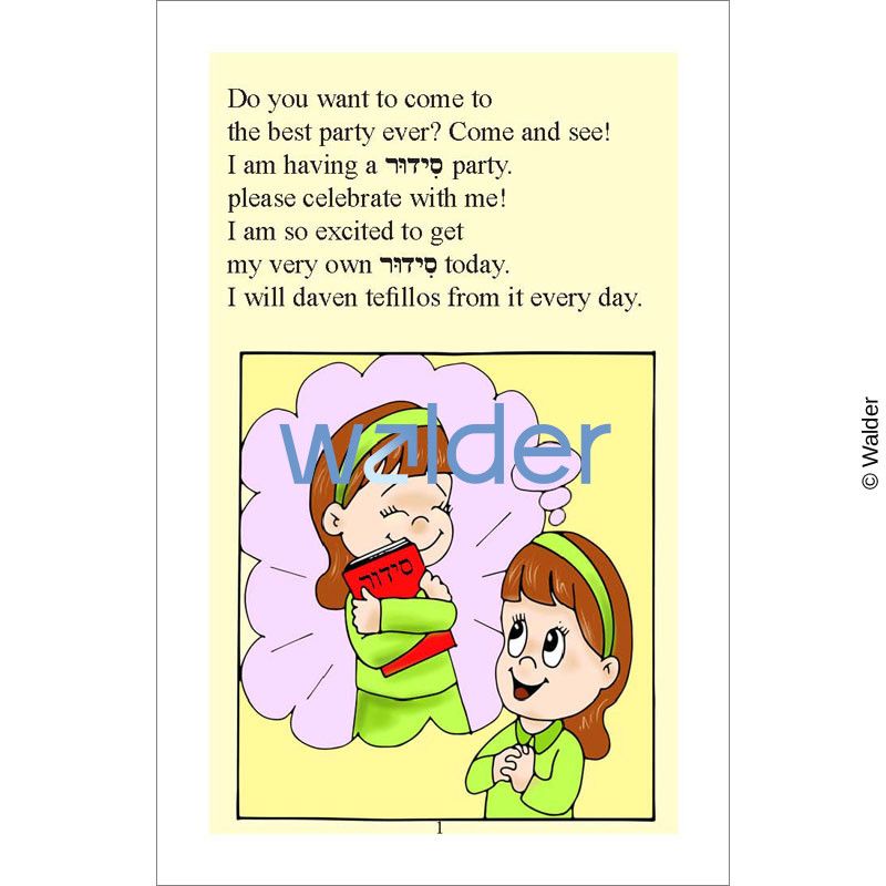 This book is part of the Alef- Beis Middos and Mitzvos Series. It introduces and describes the mitzvah of Davening from your siddur, prayer book, in a sweet story. With kind, lovable characters, the students can relate to them and will want to emulate their behavior.