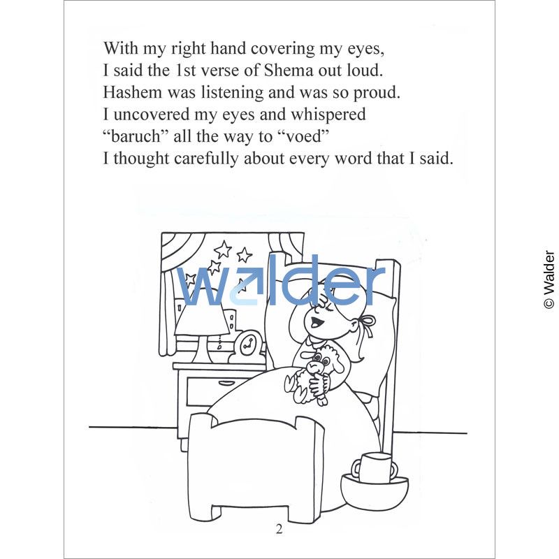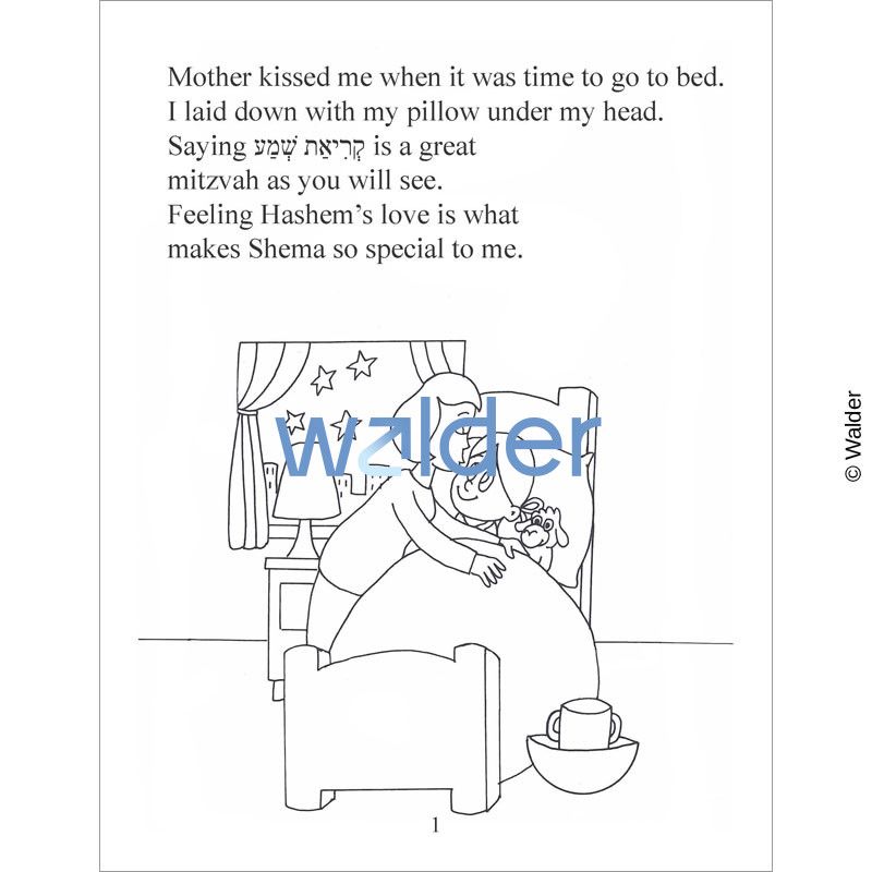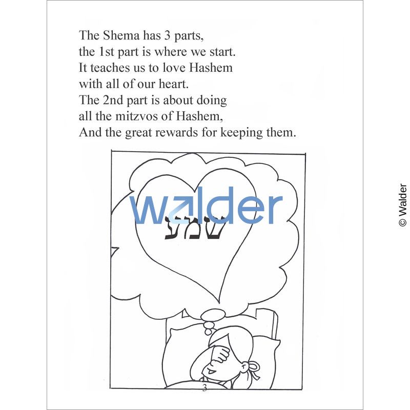 This coloring book is part of the Alef- Beis Middos and Mitzvos Series. It introduces and describes the mitzvah of Krias Shema, reading the Shema, in a sweet story. With kind, lovable characters, the students can relate to them and will want to emulate their behavior.