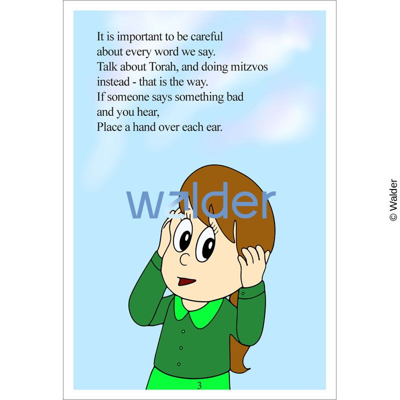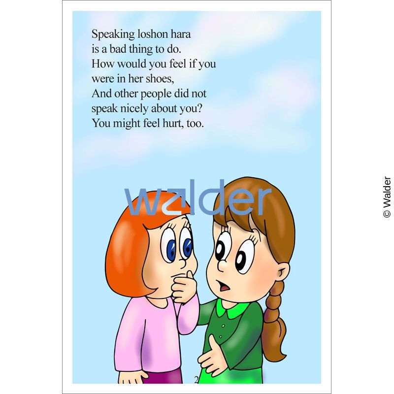 This book is part of the Alef- Beis Middos and Mitzvos Series. It introduces and describes the mitzvah of Shemiras Halashon, guarding your tongue, in a sweet story. With kind, lovable characters, the students can relate to them and will want to emulate their behavior.
