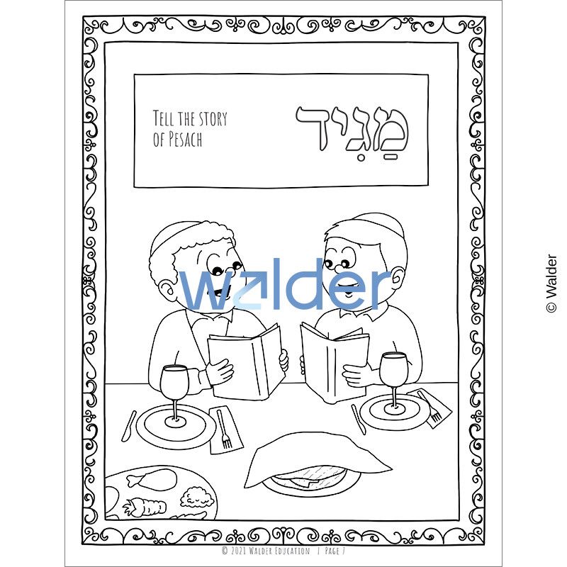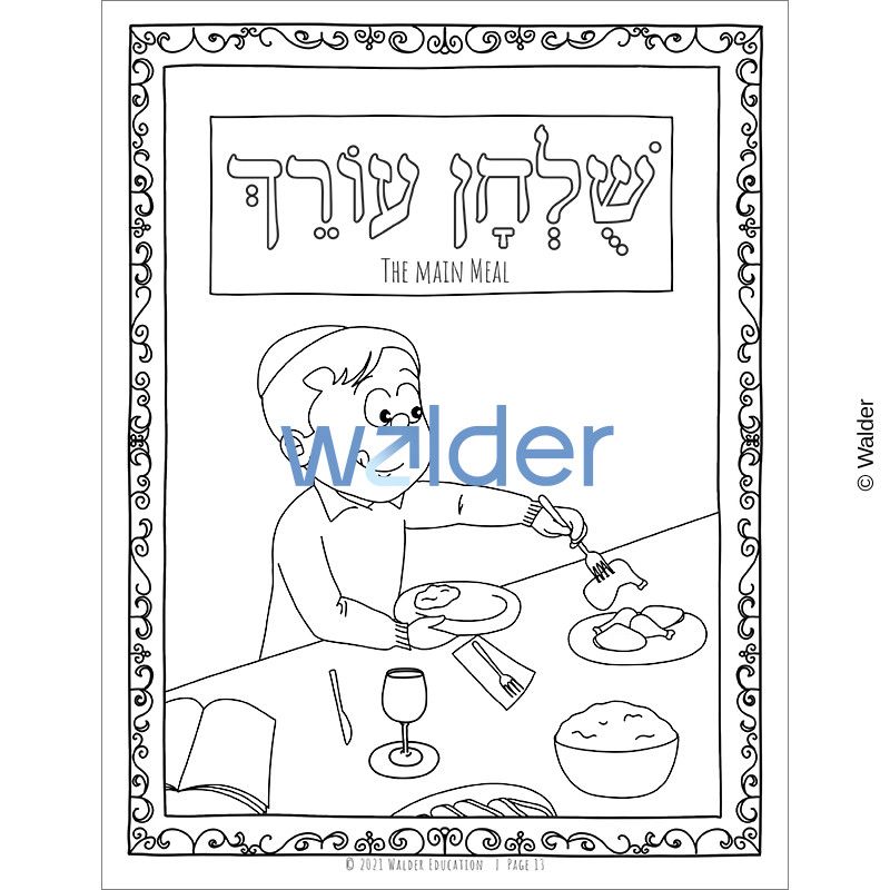 Follow the order of the Seder with this step-by-step graphic guide. Have students color these 15 pictures and use the pictures to identify and explain what to do at each step. After learning the order and steps of the Seder, students can draw a picture of themselves at the seder, decorate the front and back cover pages, and staple all the pages together to create their Haggadah. As an alternate activity, mix up the pictures and have the students sequence the steps of the seder in the correct order
