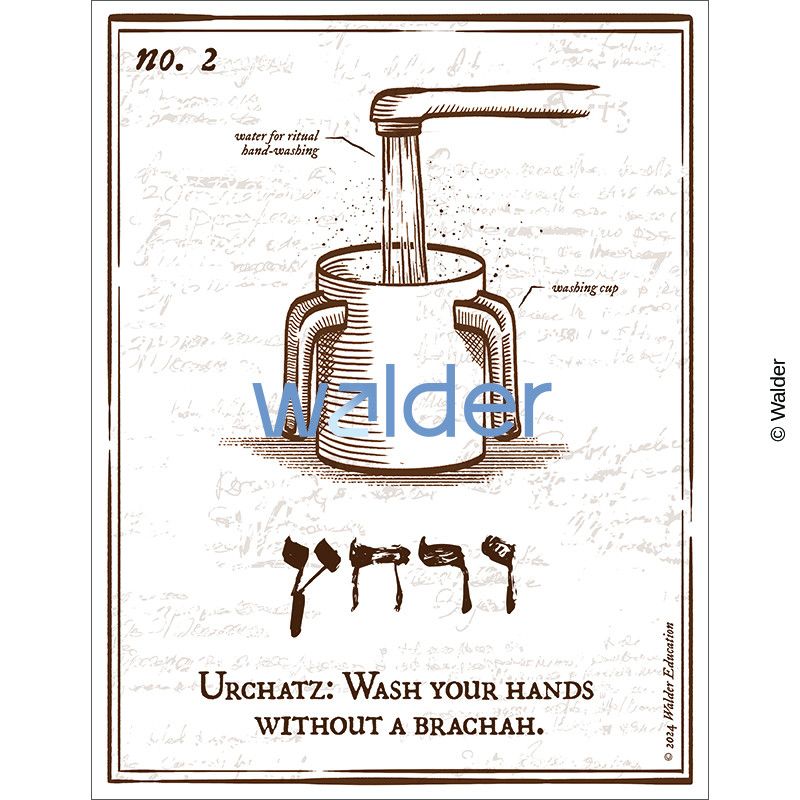 Reinforce students’ understanding of the steps of the Seder with this intriguing series of signs. Each sign features the familiar Hebrew name of one step of the Seder, a visually intuitive representation of the step, and a brief English description. The signs are numbered from 1 through 15 so students can easily identify the sequence of steps and their relative place in the Seder.