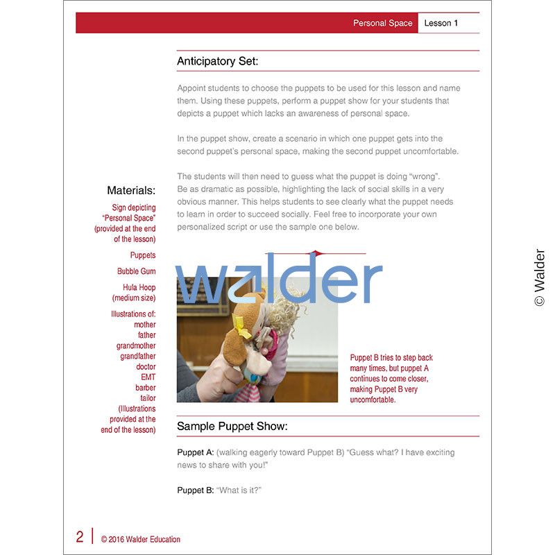 How close is too close? Maintaining and respecting personal space ensures everyone’s comfort. Engage your students with Hula Hoop fun as they learn this important social skill. This is the first lesson of a curriculum that covers 15 social skills. Each social skill lesson includes an anticipatory set puppet show, introduction to skill, interactive activities and games, discussion, story, song, assessment, and educational aids.