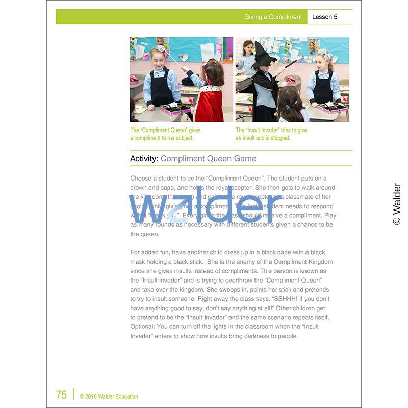 Everyone loves a compliment! This social skill lesson engages students with fun activities while it teaches them the proper way to give and receive compliments. This is the fifth lesson of a curriculum that covers 15 social skills. Each social skill lesson includes an anticipatory set puppet show, introduction to skill, interactive activities and games, discussion, story, song, assessment, and educational aids.