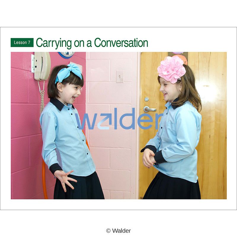 The most important point to remember when being engaged in a conversation is that both people need a chance to talk. This social skill lesson engages students with fun activities while it teaches them how to properly participate in a conversation. They learn that people in a conversation take turns talking and listening to each other. This is the seventh lesson of a curriculum that covers 15 social skills. Each social skill lesson includes an anticipatory set puppet show, introduction to skill, interactive activities and games, discussion, story, song, assessment, and educational aids.