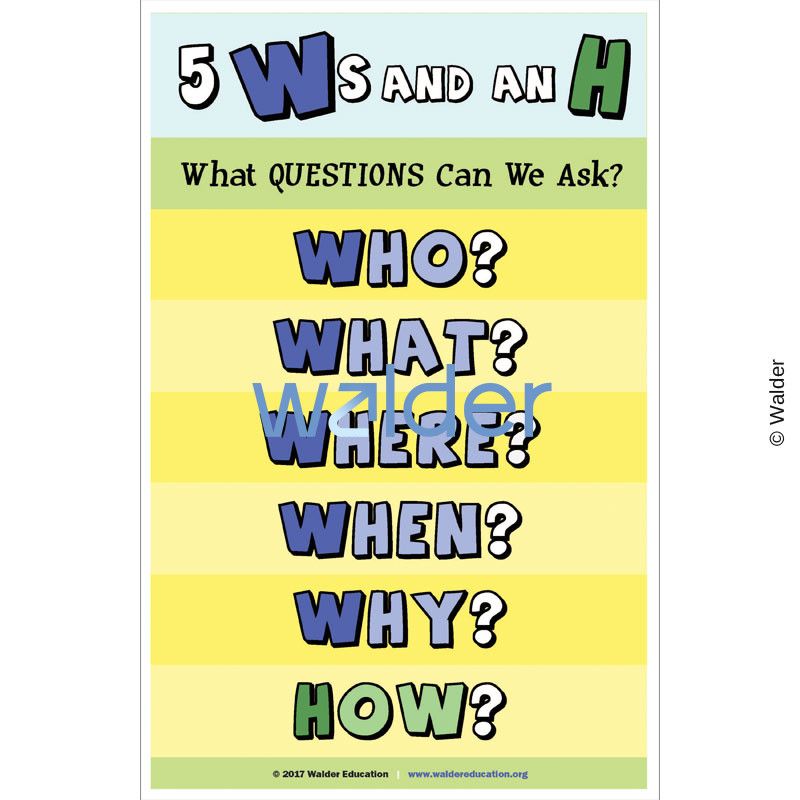This poster reminds students to think deeply by asking questions, listing the main general questions of who, what, where, when, why and how.