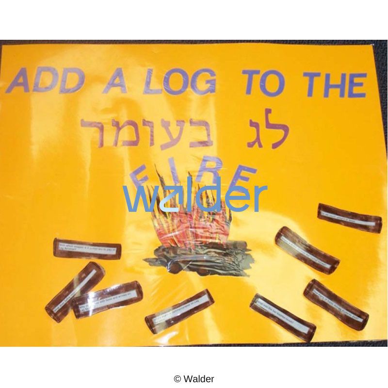 Interactive and educational bulletin board. Students will choose the correct questions printed on “logs” and match them to the answers on coordinating logs…all around the Lag BaOmer bonfire.