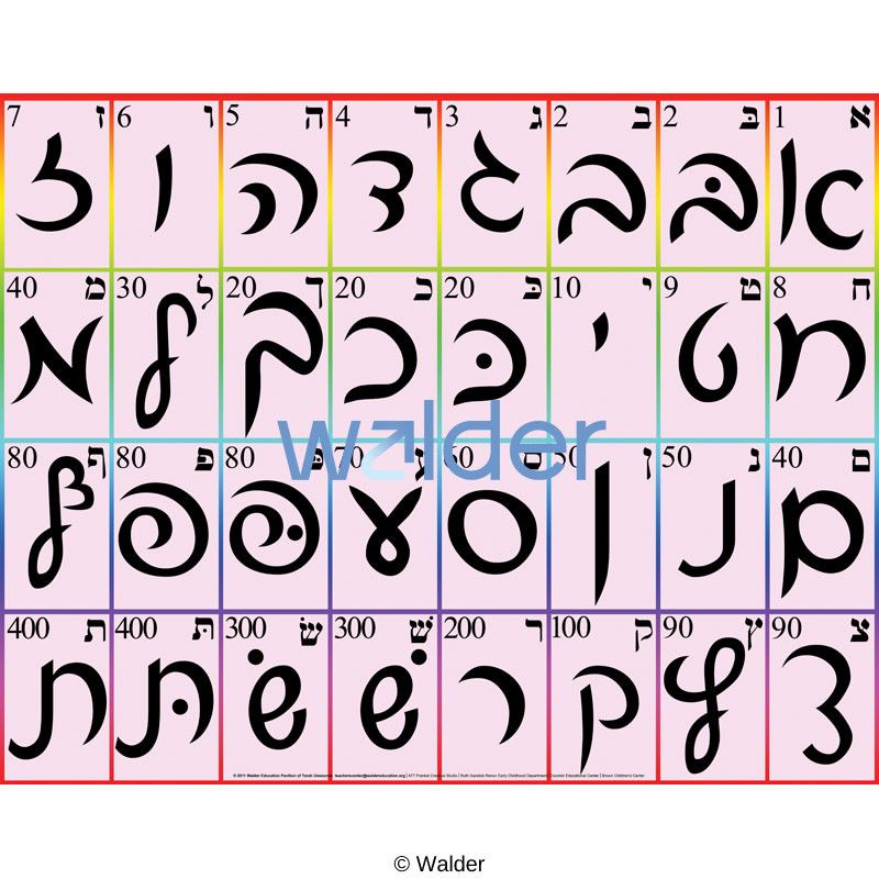 Students will recognize and identify the Hebrew letters in script and print, as well as their numeric valuesThe small Habrew print letters wiill strengthen the associations. This poster can also be cut apart so that students can alphabetize the letters or build words in script.