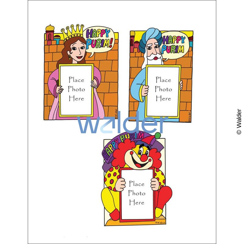 A series of adorable Purim character picture frames for students to decorate and glue their pictures on. Possible Uses: 1. Students can use these as the cover/ first page of their Megillas. 2. Students can put a magnet on the back and give the framed picture as a gift to their parents as a gift. 3. Teachers can put all the framed pictures on the wall or bulletin board for a customized Purim display.