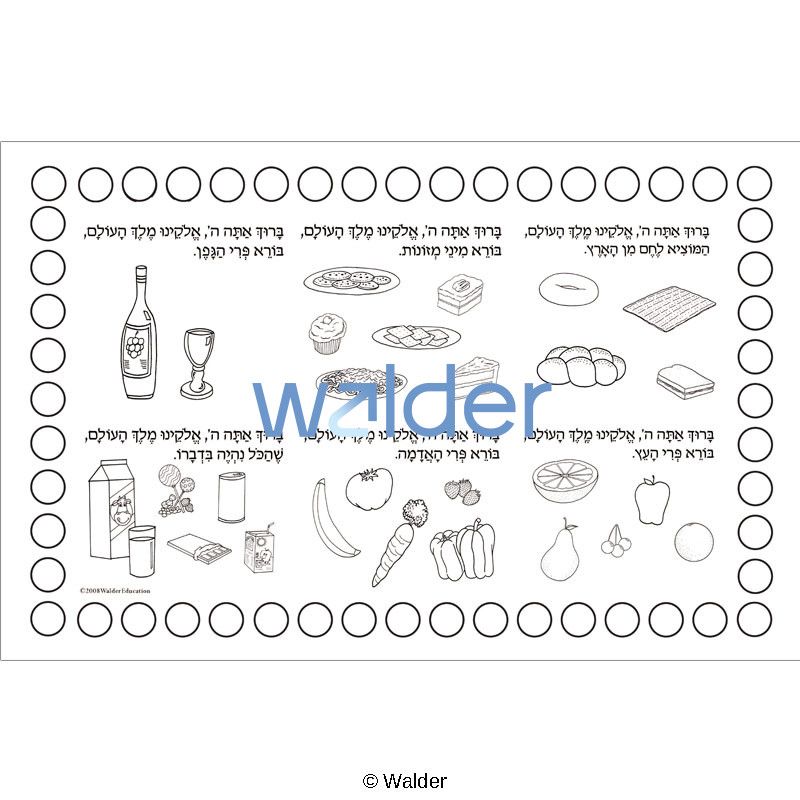 A beautiful and practical brachos placemat, part of a delightful series of brachos placemats, which was created with the busy teacher in mind. It is what we call a 1-2-3 project: 1: Color. 2: Glue. 3: Laminate. Of course, a detailed instructions and a template are included.