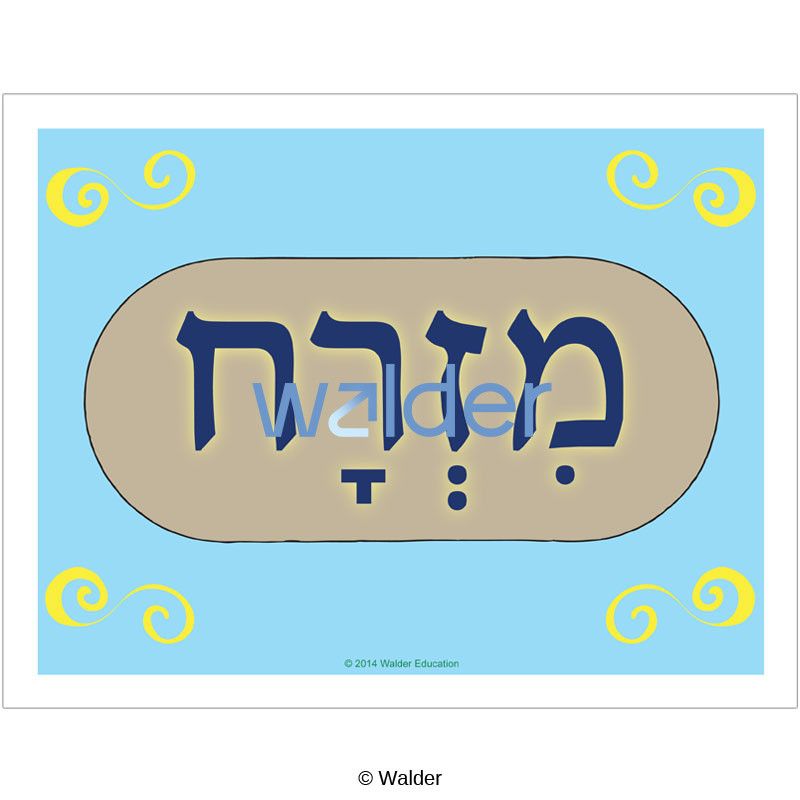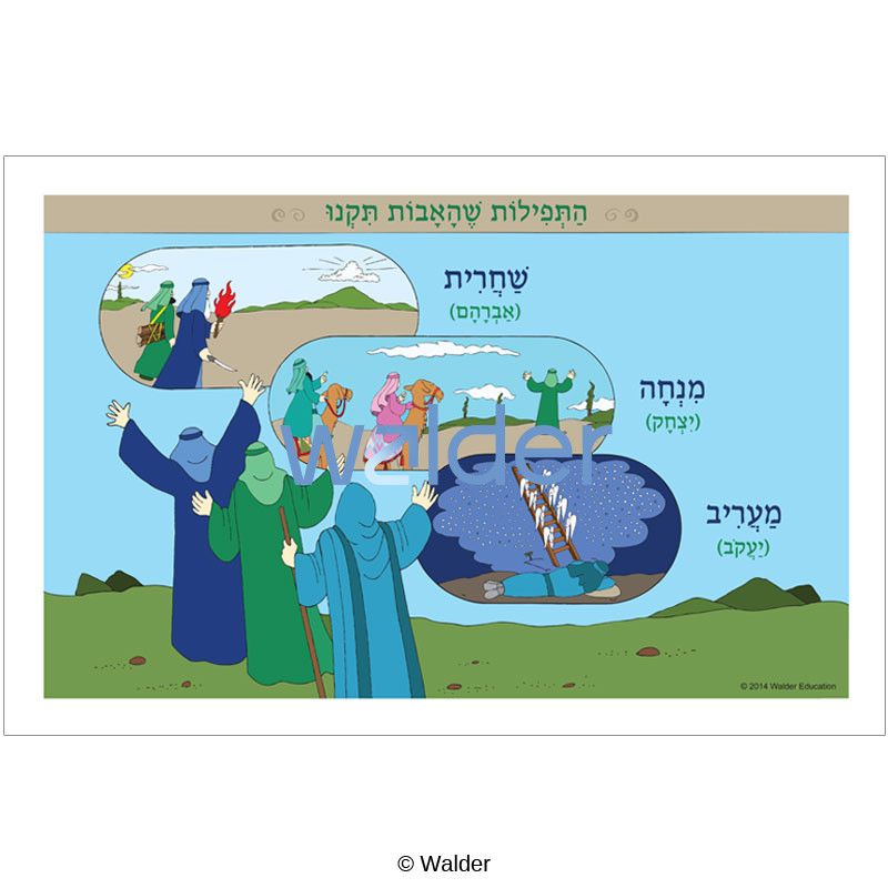 This unique sign will help your students connect each of the daily tefillos with the Av who established tefillah at that time of day. Use as deskmats to place under your students’ siddurim, demonstrating proper respect for the area in which they daven. It can also be used as a classroom sign together with the accompanying Mizrach sign (SKU# SNTEF15-JF029) on the eastern wall of your classroom; the students will easily identify the direction in which to stand for the Amidah.