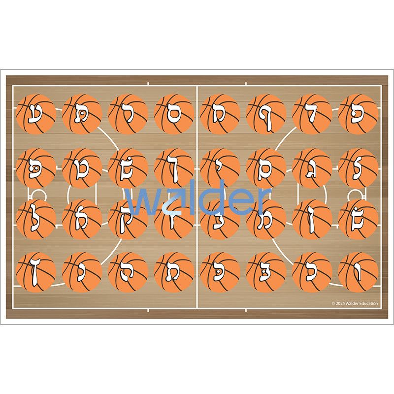 Choose mats and basketballs with the same type of letters to reinforce basic letter recognition. Take the learning to the next level by choosing mats and basketballs with different types of letters or with gematria.