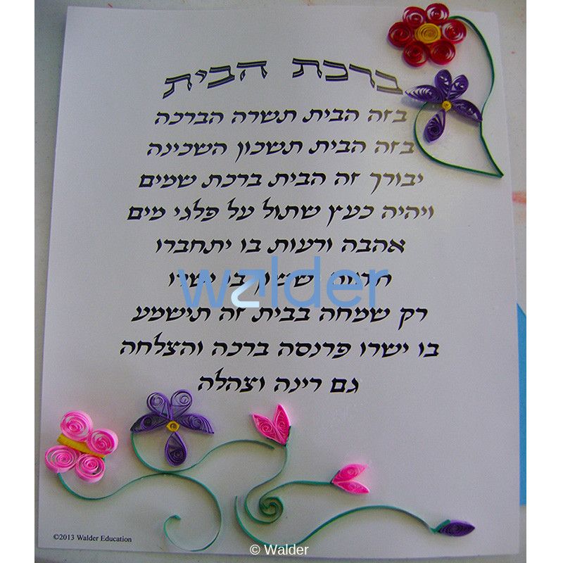Quilling, or paper filigree, is the art of rolling and gluing thin strips of paper into different shapes to create decorative designs. These beautiful three-dimensional embellishments can then be used to decorate anything, especially this Birkas Habayis (blessing for the home) which makes a perfect gift. While the technique for quilling is very simple, the design element is very complex, making it an ideal crafts for all grade levels, because it can be as intricate or as basic as required.
