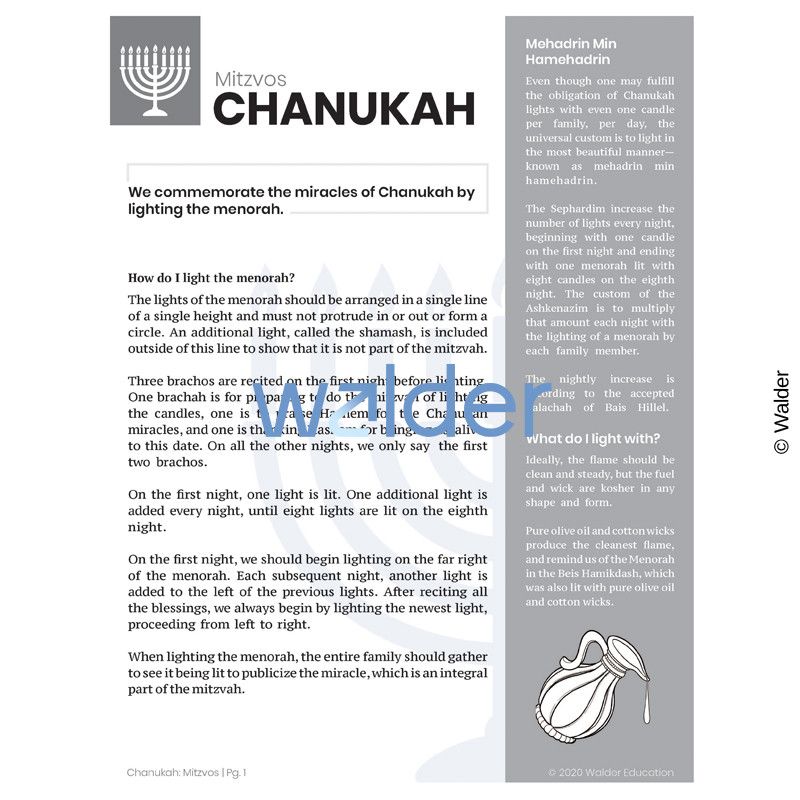For more information about the holiday, look for other Chanukah handouts in our Bite-Size Chagim Curriculum. The question format, along with easy-to-understand answers, makes learning these concepts a breeze for all ages. Worksheets are also included to help check for comprehension and understanding.