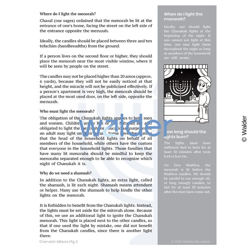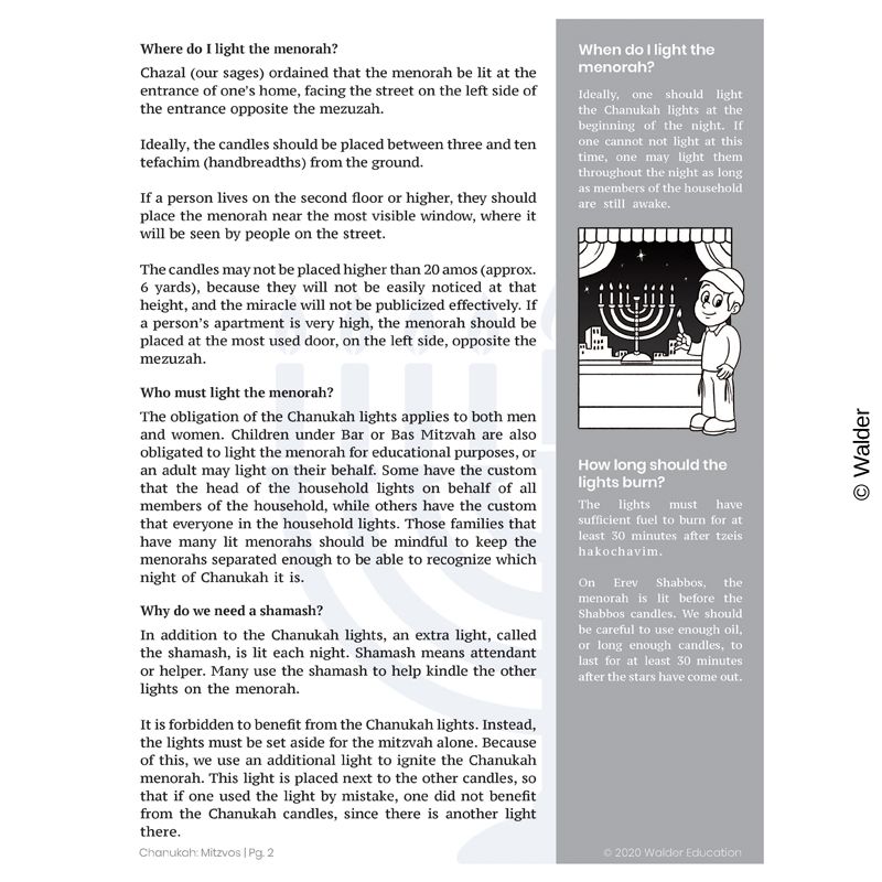 Understand holiday practices with this Chanukah Mitzvos handout. Students will know the what, how, and why of each commandment so that they can perform them with enthusiasm.