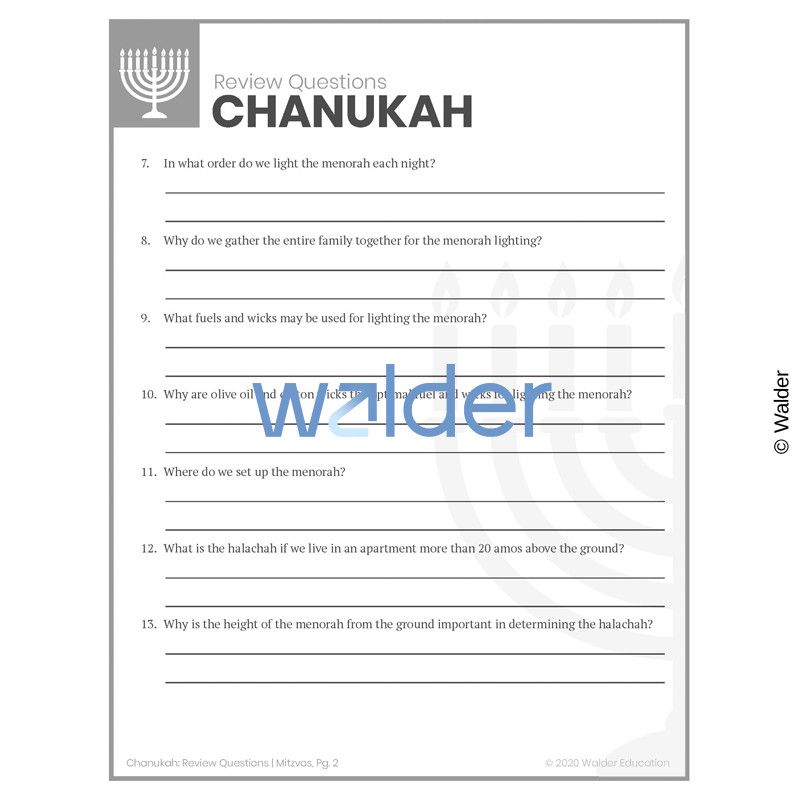 For more information about the holiday, look for other Chanukah handouts in our Bite-Size Chagim Curriculum. The question format, along with easy-to-understand answers, makes learning these concepts a breeze for all ages. Worksheets are also included to help check for comprehension and understanding.