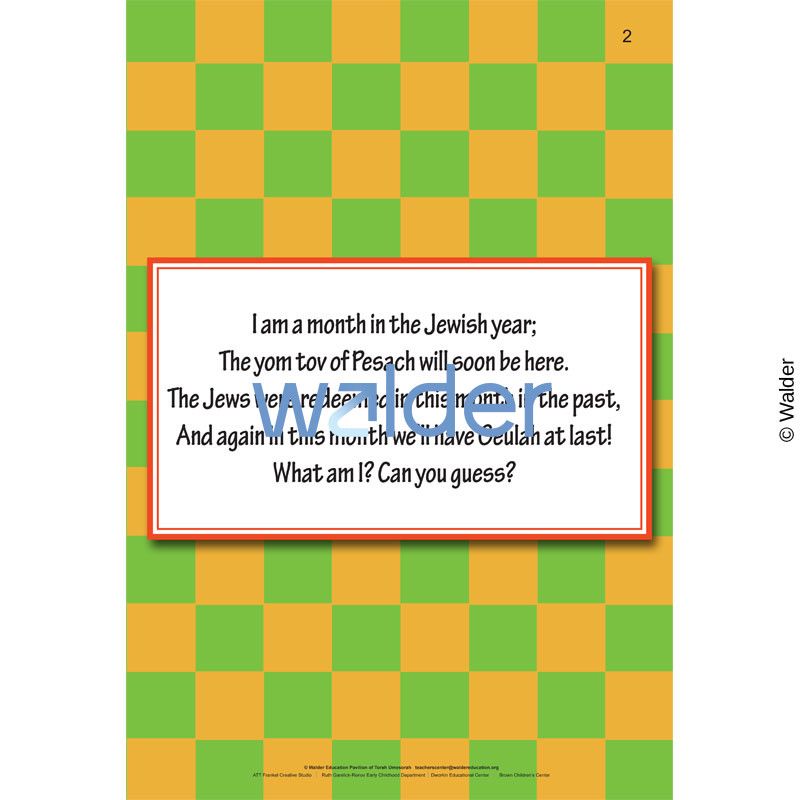 This Pesach Can You Guess Big Book/Book is part of the Can You Guess Yom Tov Big Book/Book Series. This vibrant, interactive big book helps students learn and review basic concepts about the holiday. Different clues about the related items and concepts are presented, and the students need to figure out what the clues are referring to. This provides an interesting, exciting, and visually appealing way to introduce and reinforce knowledge.