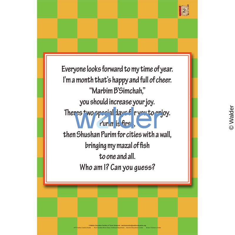 This Purim Can You Guess Big Book/Book is part of the Can You Guess Yom Tov Big Book/Book Series. This vibrant, interactive big book helps students learn and review basic concepts about the holiday. Different clues about the related items and concepts are presented, and the students need to figure out what the clues are referring to. This provides an interesting, exciting, and visually appealing way to introduce and reinforce knowledge.