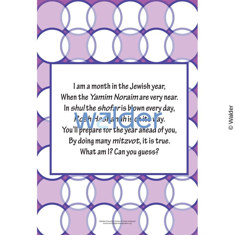 Goals and Objectives: Students will learn and review many important concepts of Rosh Hashana and Yom Kippurby listening to the rhymes and guessing what or who they are referring to.