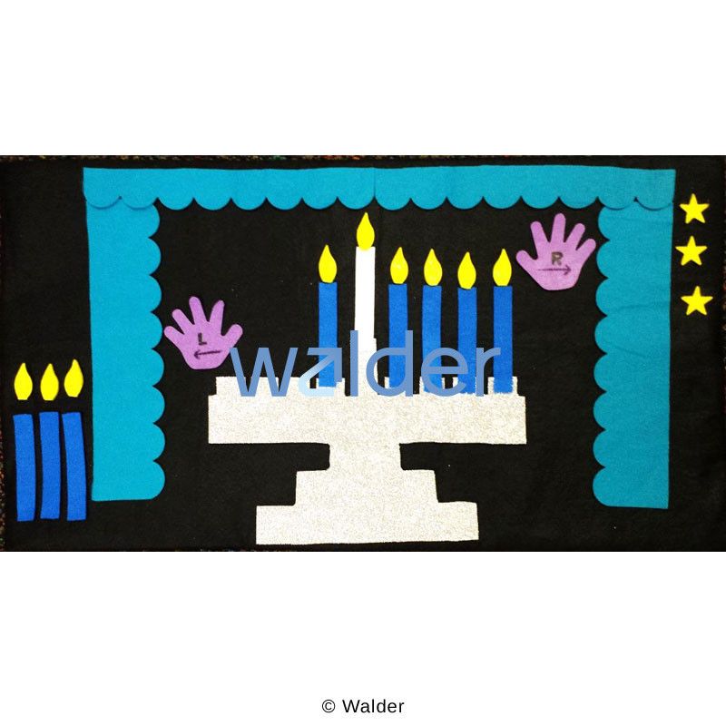 Students can “light “the Chanukah candles each day on a glittering felt board menorah. Learning the order of placing Chanukah candles in the menorah, as well as the order in which they are lit each night, also serves to introduce the directional concepts of right and left.