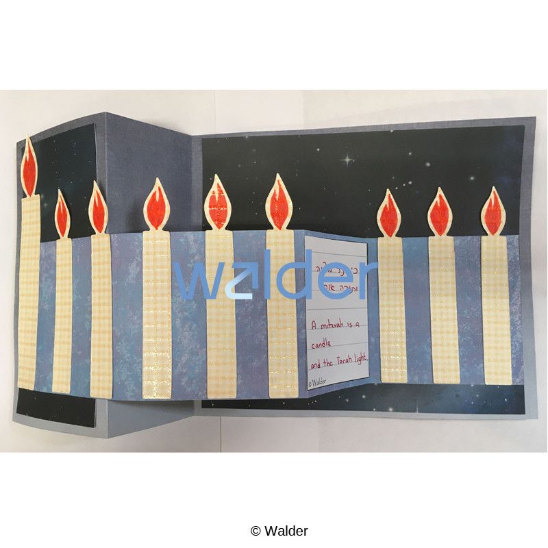 The student will create a unique Chanukah card utilizing paper craft skills. Students will develop the middah (attribute) of bein adam l’chaveiro (relationship between a man and his fellow man.)