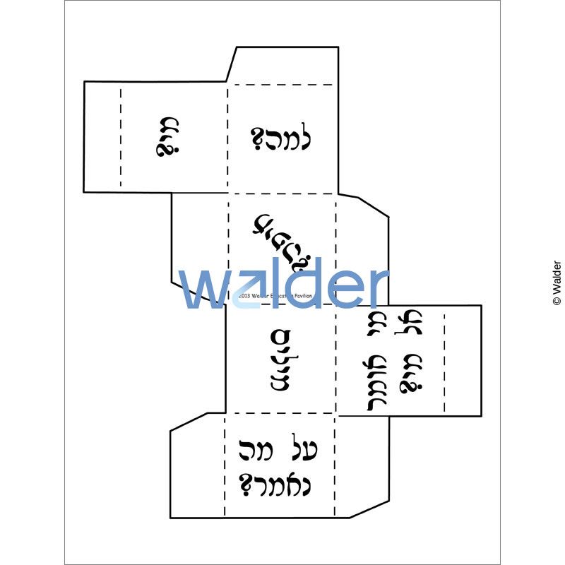Review any text with these fold-and-use dice. This fun and interesting way to review material with your class will help to create an enthusiastic atmosphere as the teacher assesses student learning. Students roll the die and then answer a question from the category it lands on. It is a 1 2 3 (1. Cut, 2. Fold, and 3. Glue) activity that is pertinent for any lesson. The dice template comes in print, Rashi script, and blank.