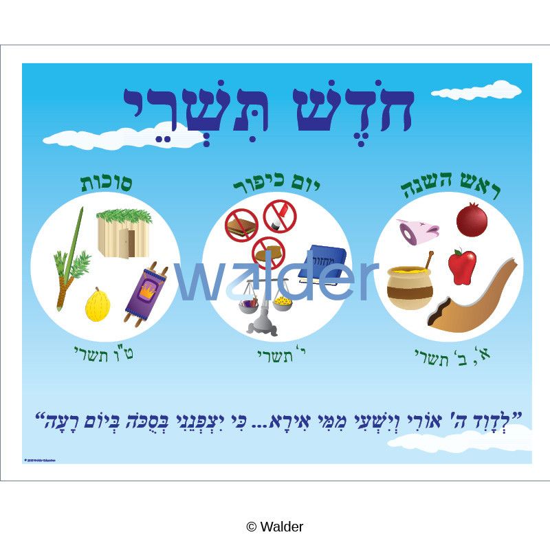 Get ready for the Tishrei chaggim in Elul with this poster, featuring the upcoming holidays and their dates. The poster also contains the parts of L’David, Hashem Ori (Tehillim 27) that focus on Rosh Hashanah, Yom Kippur and Sukkos as a reminder for the class to add it to their davening.