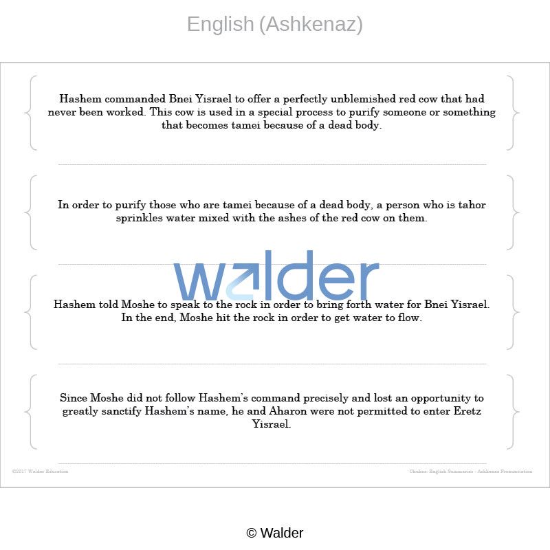 Chukas Pictures and Pesukim