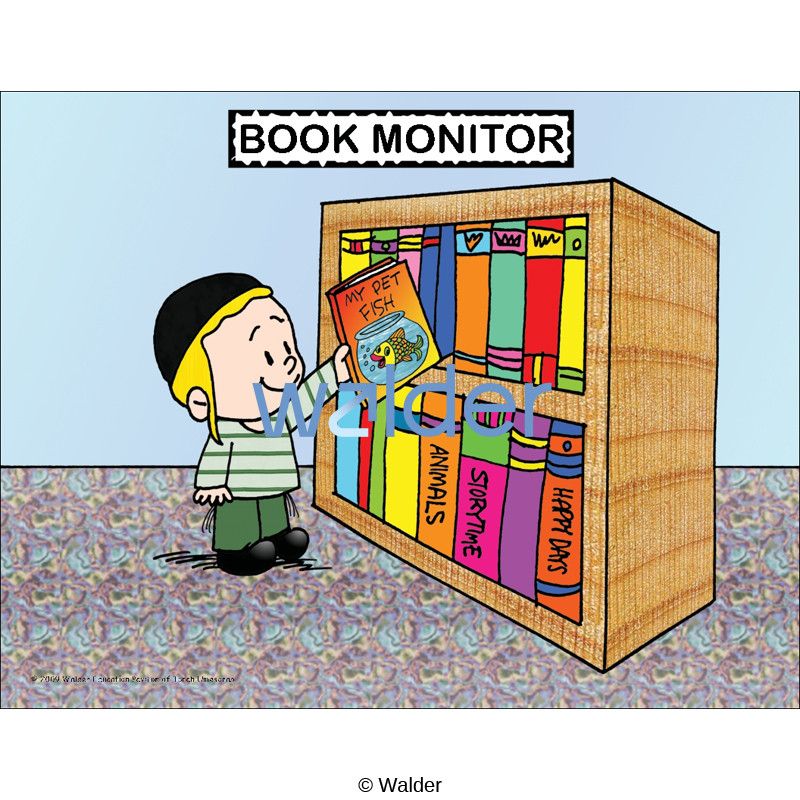 Place these job signs on the bulletin board in front of the classroom so the students know their jobs for the day/week/month. Pictured: book monitor
