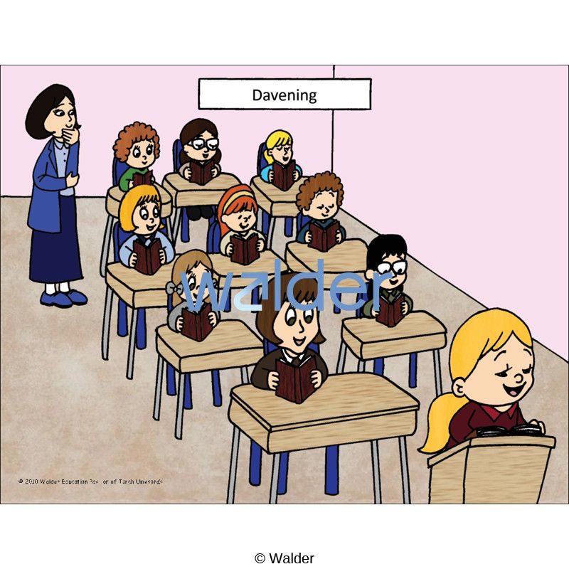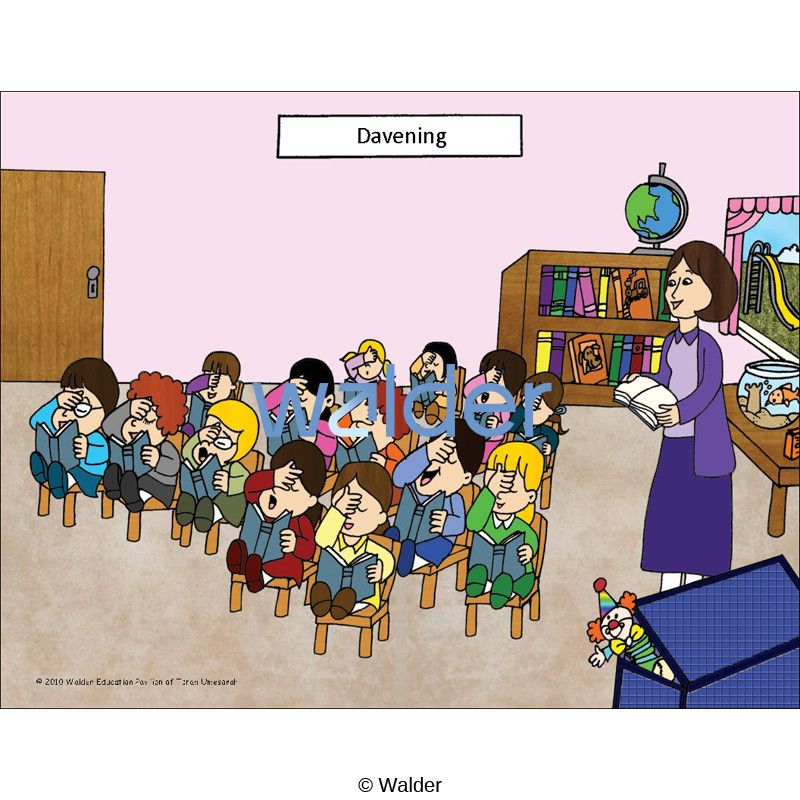 Place these signs on the black board or bulletin board in front of the room so the students know the schedule for the day. Size is 8.5×11. Pictured: Davening/Shema