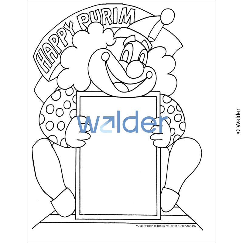 Clown picture frame, part of a series of adorable Purim character picture frames for students to decorate and glue their pictures on. Possible Uses: 1. Students can use these as the cover/ first page of their Megillas. 2. Students can put a magnet on the back and give the framed picture as a gift to their parents as a gift. 3. Teachers can put all the framed pitures on the wall or bulletin board for a customized Purim display.