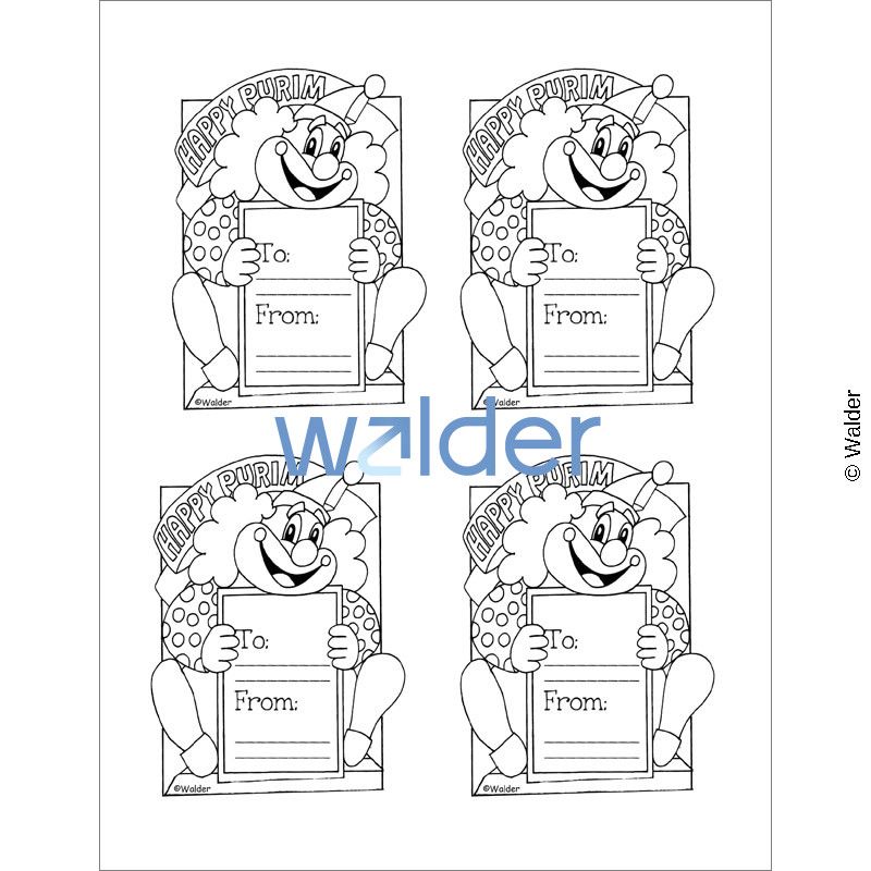 Students will delight in coloring and personalizing their own mishloach manos cards. This is an ideal project to get children excited about the mitzvah of mishloach manos and will inspire them to learn the halachas concerning the mitzvah so they fulfil the obligation with the proper intentions. This card features black and white graphic of a jolly clownr to be colored. A place to write “to” and “from” is provided.