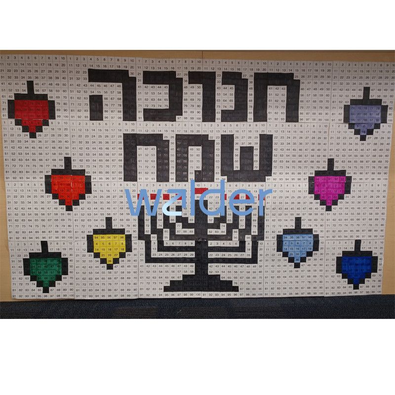 Each student uses one hundred chart to create a piece of this 24 section project, and when completed and hung up, decorates the classroom, wishing all a happy Chanukah.