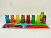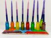 Review students’ knowledge of menorah lighting, such as candle spacing, placement, and order of lighting, with this colorful menorah inspired by the bodies of water in Israel. Students will paint clear glass vials with a mixture of glue and paint to mimic the shimmering colors of sea glass and use them to create a personalized menorah.