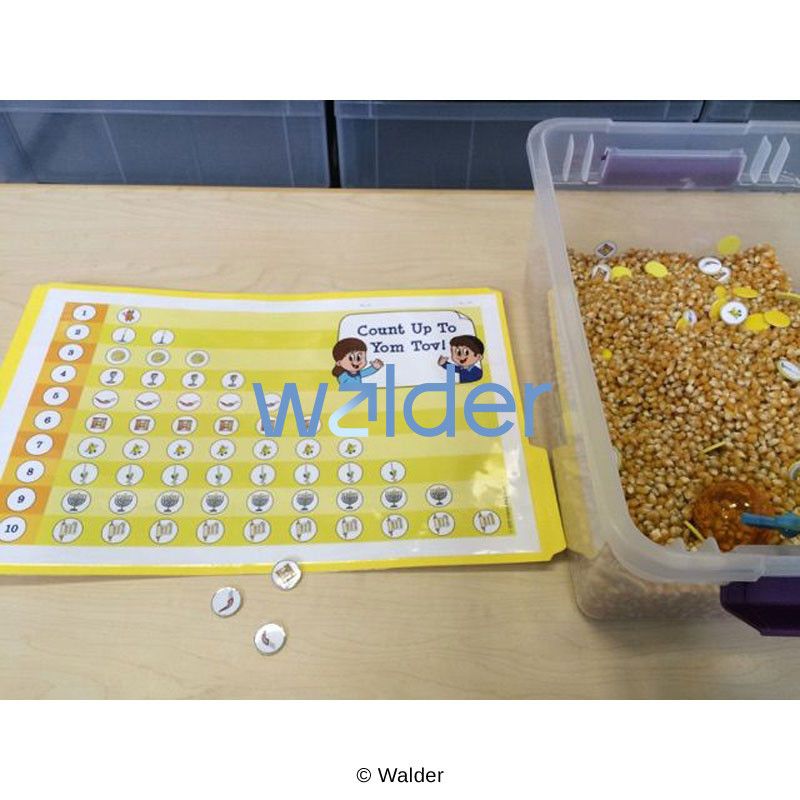 This sensory activity is a fun way to engage children in learning and reviewing their counting skills. It employs several components. It reinforces the knowledge of, and familiarity with many important Yom Tov symbols. It also provides students with an enjoyable matching and counting activity.