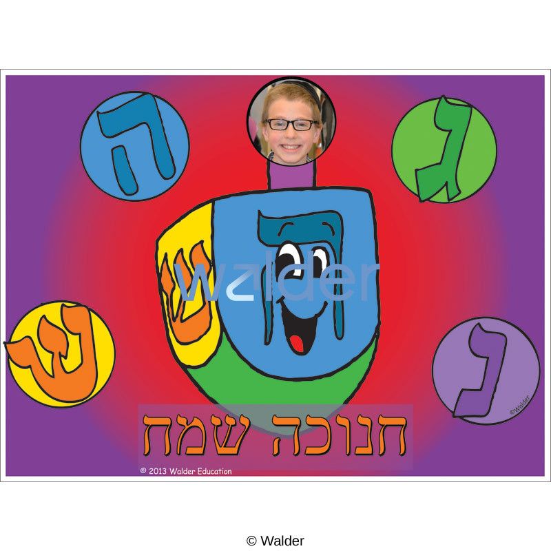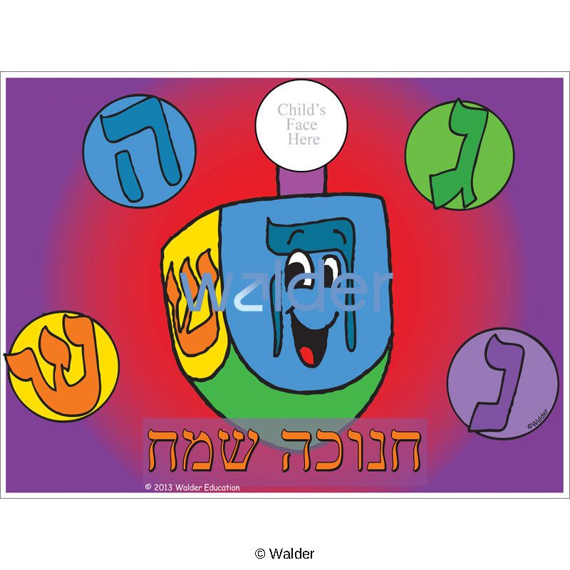 This 3 panel display of a dreidel and the phrase ‘Chanukah Sameiach’ is ideal for photo opportunities at school functions and celebratory events. The students stand behind the board and, with their head put through the hole, their picture is taken. The picture can then be included in a Chanukah card or distributed at a carnival. This allows the students to take ownership of the item and what it means thereby enhancing their appreciation of the holiday.