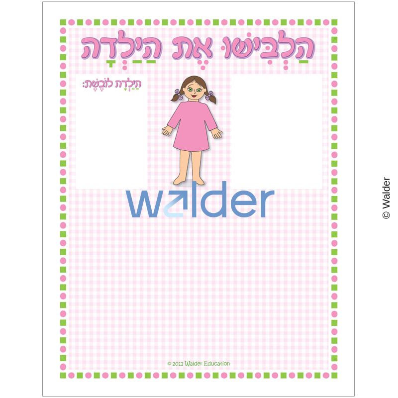Match the Hebrew vocabulary word to the girl’s clothing. Making this vocabulary unit fun, this teacher directed match game is an asset for any classroom. Students can learn the proper Hebrew word for each article of the girl’s clothing. The teacher will select vocabulary words and place them in the left empty rectangle. Then, the student chooses the correct articles of clothing from the bottom to match and place onto the doll.