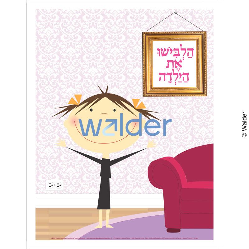 This interactive poster and clothing pages can be used in a Hebrew language class. Teachers can direct students In Hebrew, to dress the girl, as they teach the words for each of the clothing. This large poster is handy for full class participation while learning or reviewing the words for the clothing, colors, and combinations.