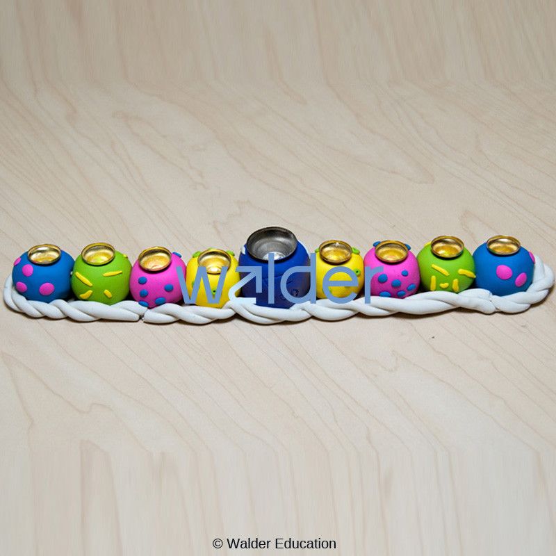 A gorgeous menorah that is simple and fun to create. Students manipulate the clay by rolling it into balls and snakes to create this lovely and unique menorah.