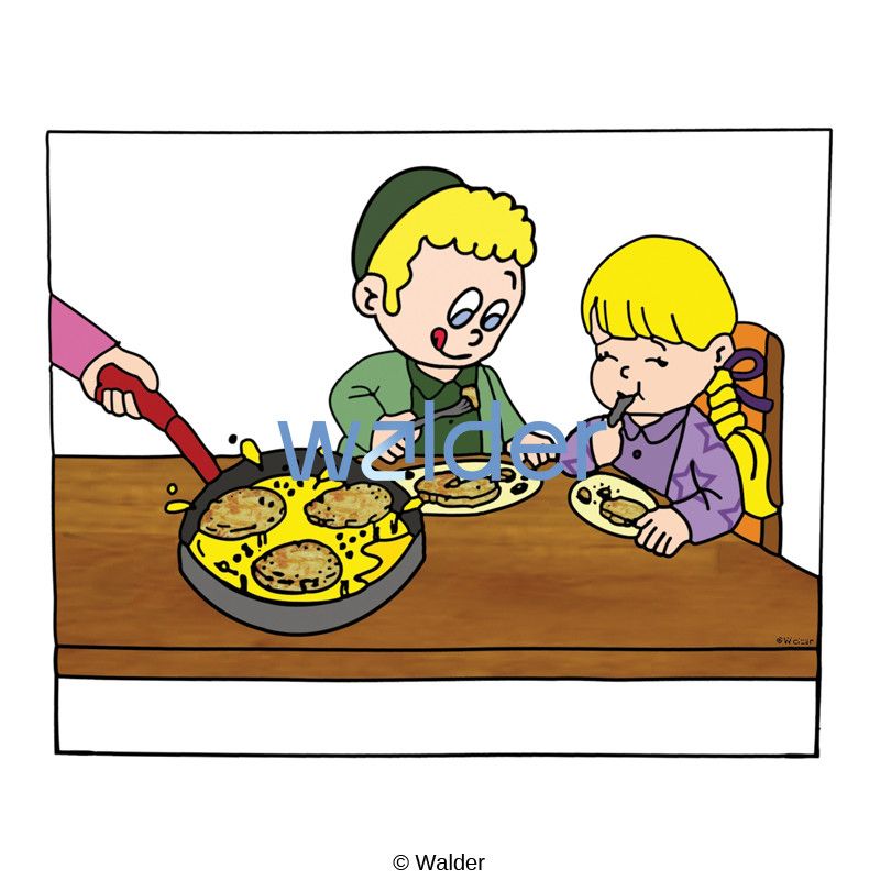 The Walder Education Pavilion brings Jewish education to life with these Chanukah clipart illustrations and images. Dress up the classroom, decorate student pages, and create activities or gifts. These adorable and fun drawings capture the essence of the holiday. Pictured: Eating Latkas