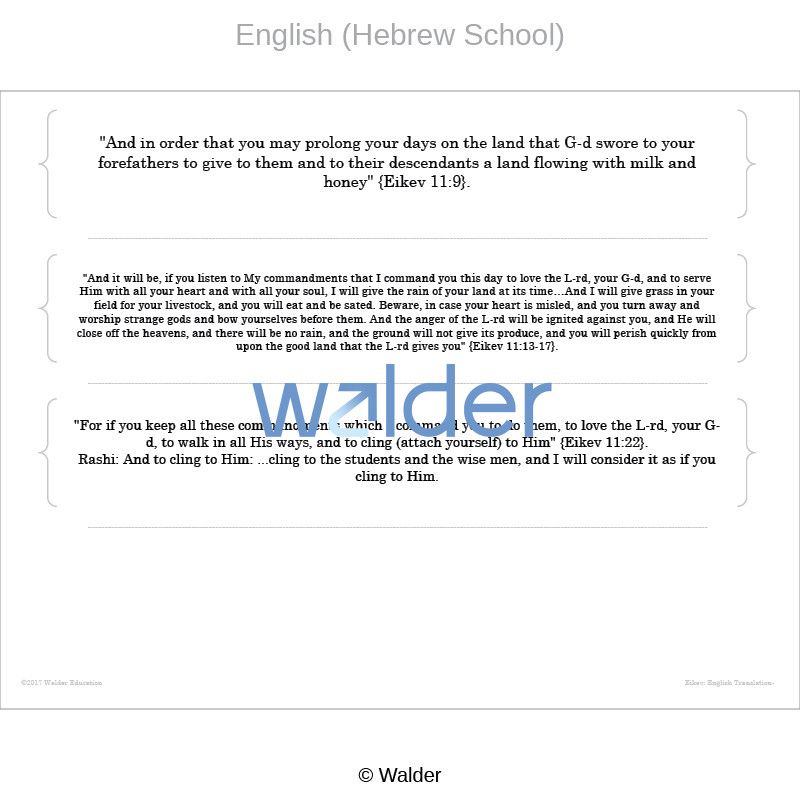 | Subject(s): | Tanach, Torah: Chumash and Parsha, Devarim, Eikev |