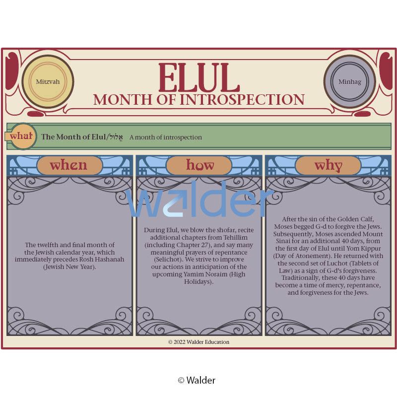 Students will be able to restate and explain key concepts related to the month of Elul.