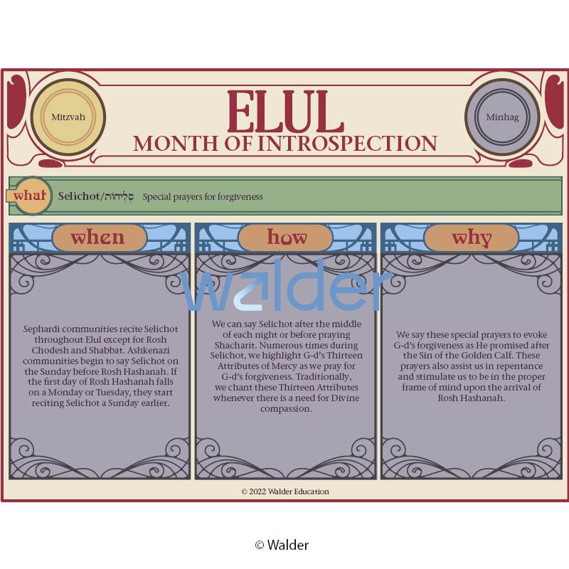 Students will be able to implement the customs related to the month of Elul with the help of this chart.