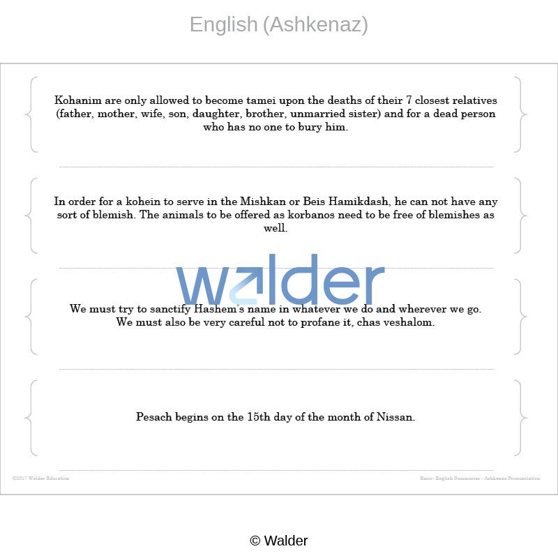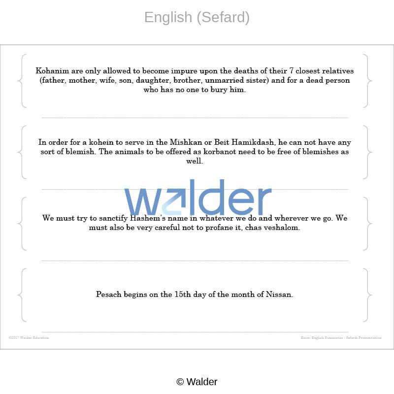 | Subject(s): | Tanach, Torah: Chumash and Parsha, Vayikra, Emor |