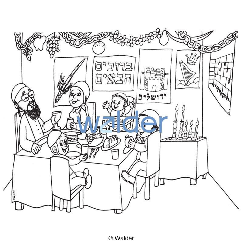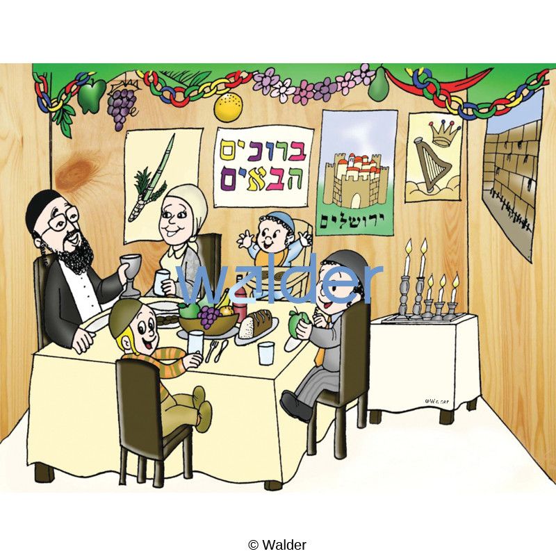 The Walder Education Pavilion brings Jewish education to life with these Sukkos clipart illustrations and images. Dress up the classroom, decorate student pages, and create activities or gifts. These adorable and fun drawings capture the essence of the holiday. Pictured: Family Sitting and Eating in the Sukkah