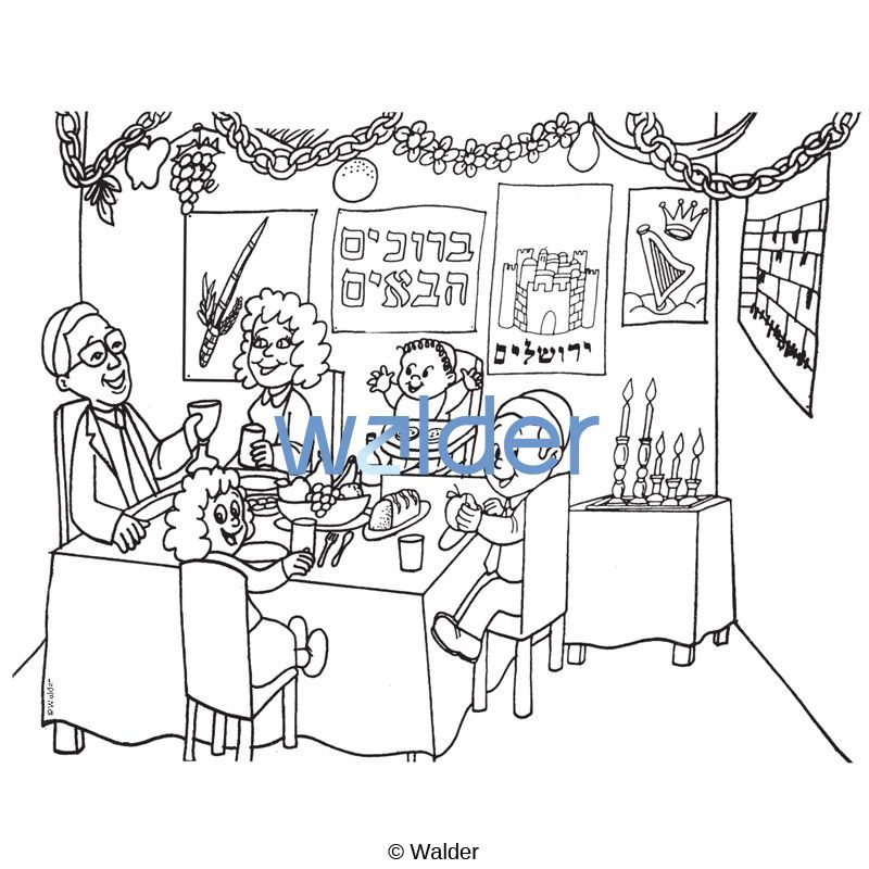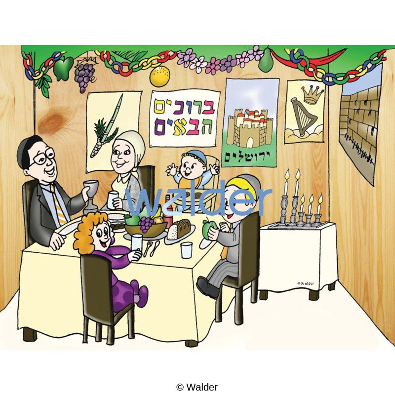 The Walder Education Pavilion brings Jewish education to life with these Sukkos clipart illustrations and images. Dress up the classroom, decorate student pages, and create activities or gifts. These adorable and fun drawings capture the essence of the holiday. Pictured: Family Sitting and Eating in the Sukkah