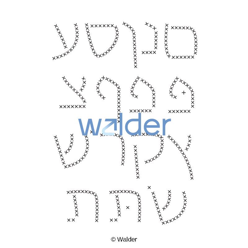 The student will enjoy tracing over the needlepoint “x” marks to create a faux needlepoint artwork on Pesach pillowcases, aprons, Challah and Matzo covers used to enhance Shabbos and all of the Jewish holidays. The student’s artistic work will proudly be displayed and enjoyed by the whole family. This Alef Beis template is in a rounded font design.