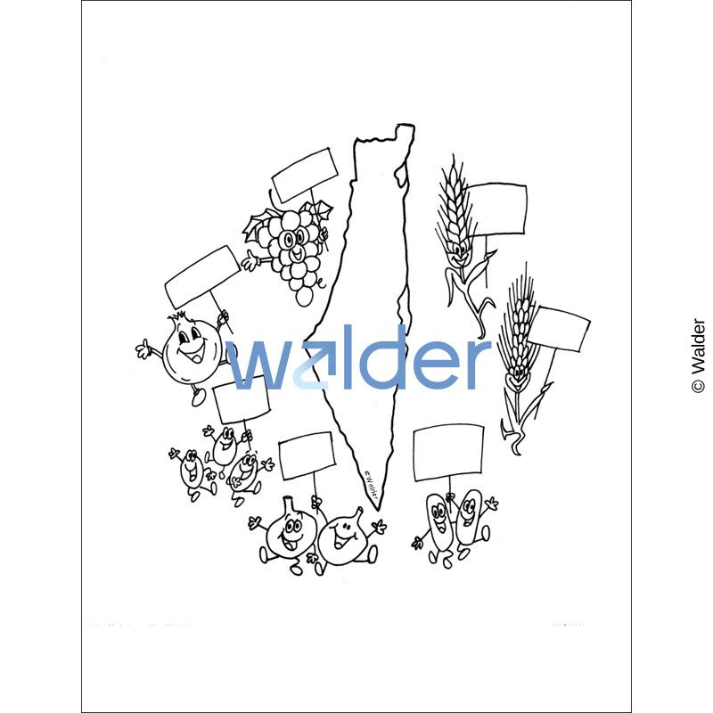 A map of Israel surrounded by the shivas haminim with empty flags for students to fill in. Possible Uses: Students will fill in the blank flags to correctly identify each of the shivas haminim. Students may color this sheet after they are finished.