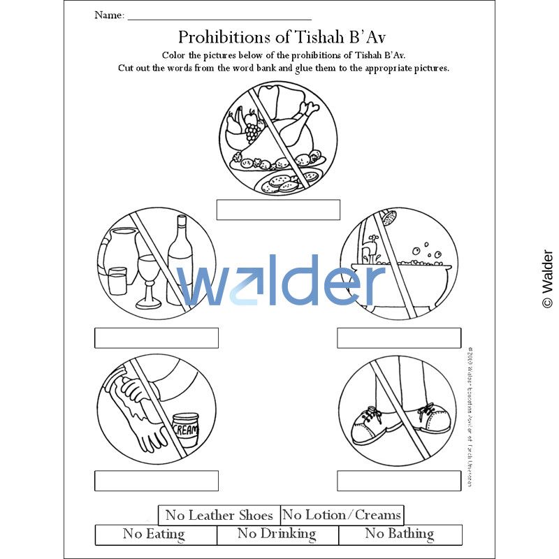 Fill In The Blanks Illustrated Prohibitions of Tisha B’Av Coloring Sheet